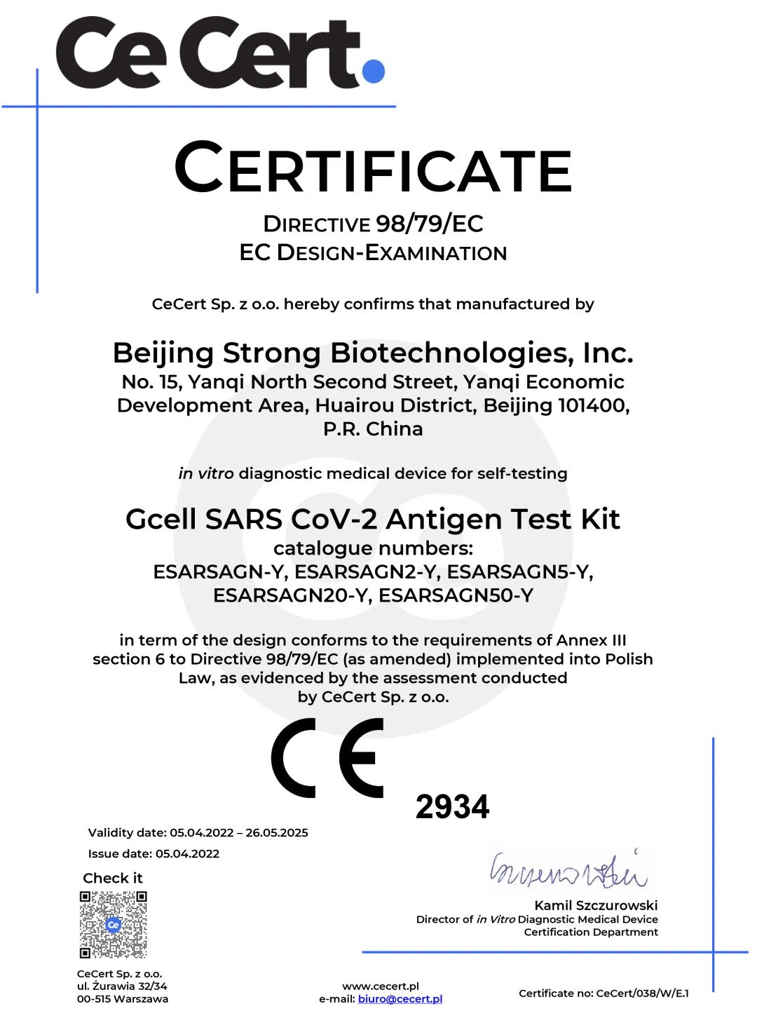 CE证书是由欧盟授权认证机构揭晓的,用以证实厂家生产产品切合欧盟相关标准和CE认证规则要求的书面证实性文件。