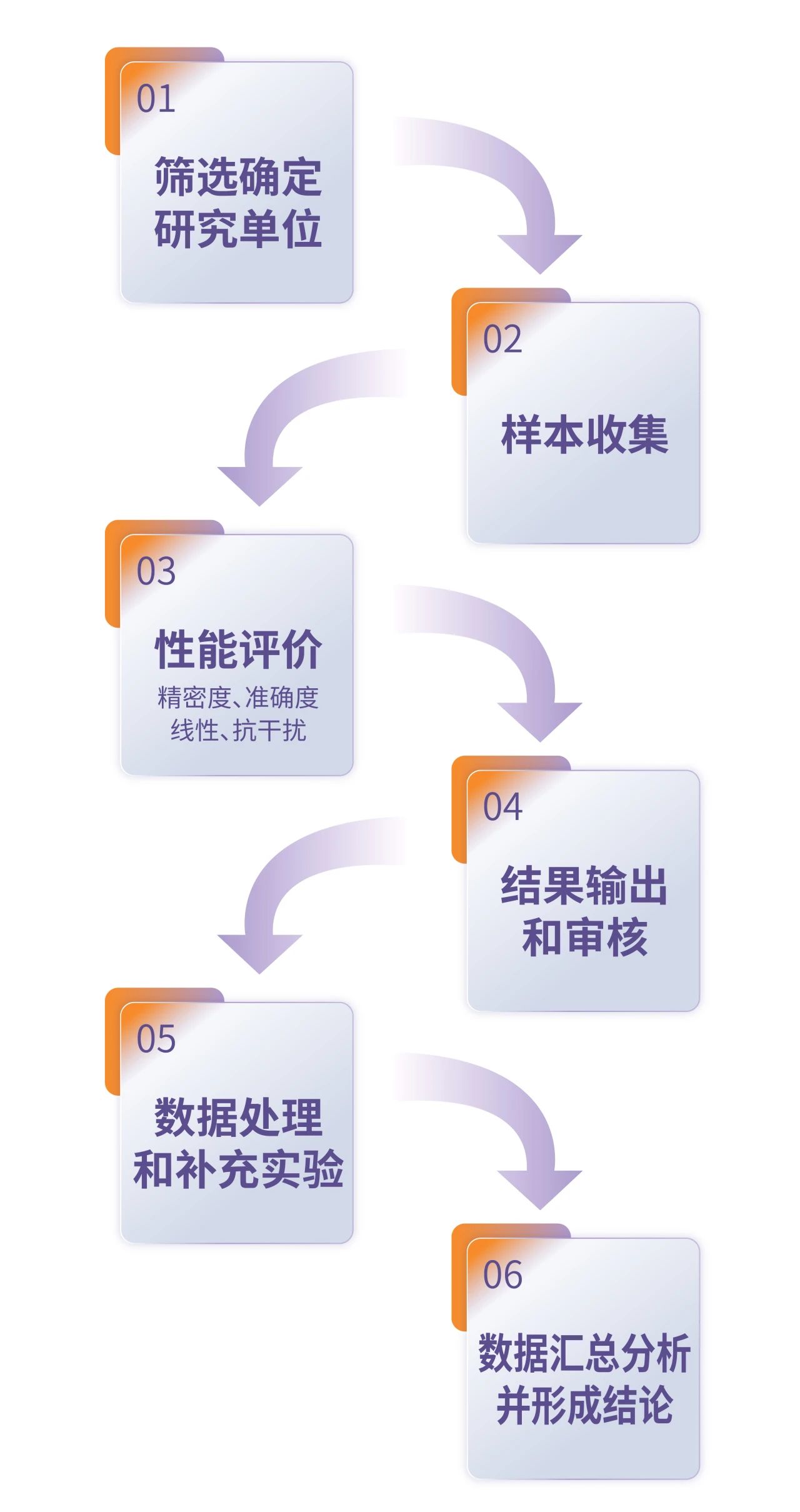 多中心性能验证,要求至少3家单位在划准时间内、依据统一实验计划并使用相同批号试剂对项目性能举行评估,最终汇总各单位检测效果举行比对及综合评估。