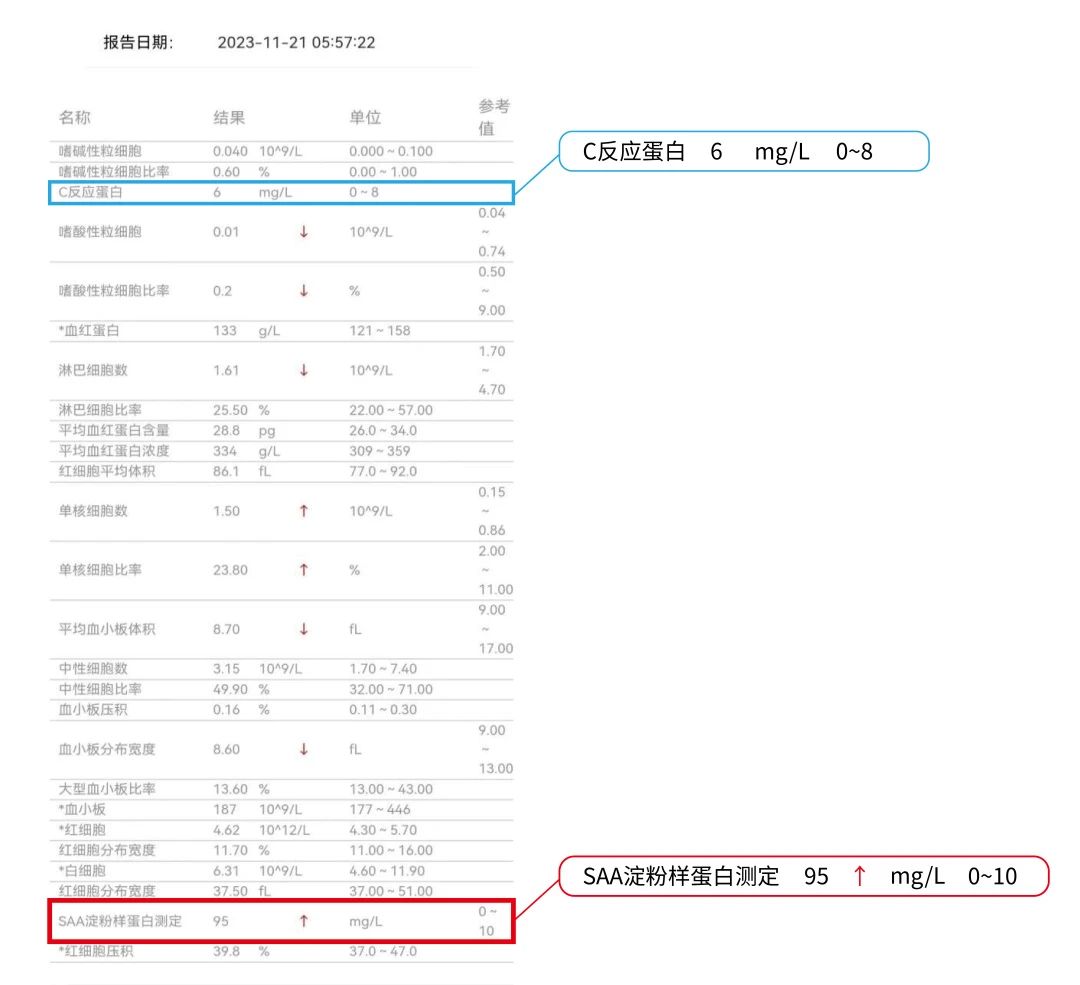 在常见的血液检测指标中,除通例的血通例、C反应卵白(CRP)检测外,另一炎症指标——血清淀粉样卵白A(SAA)的检测在该类疾病的诊疗中敏感性备受关注 。