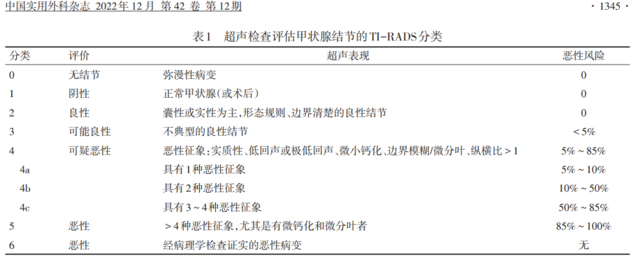 TI-RADS£¨Thyroid imaging reporting and data system£©¼´¼××´ÏÙÓ°Ïñ±¨¸æºÍÊý¾Ýϵͳ¡£ÒÀ¾ÝÎå¸ö¼××´ÏÙ½á½Ú¶ñÐÔÌØÕ÷¾ÙÐзּ¶£º¢ÙʵÐÔ½á½Ú£»¢ÚµÍ»ØÉù»ò¼«µÍ»ØÉù£»·ÖÒ¶»ò±ßÑØ²»¹æÔò£»¢ÜɰÀùÑù¸Æ»¯£»¢Ý×ݺá±È¡Ý1¡£