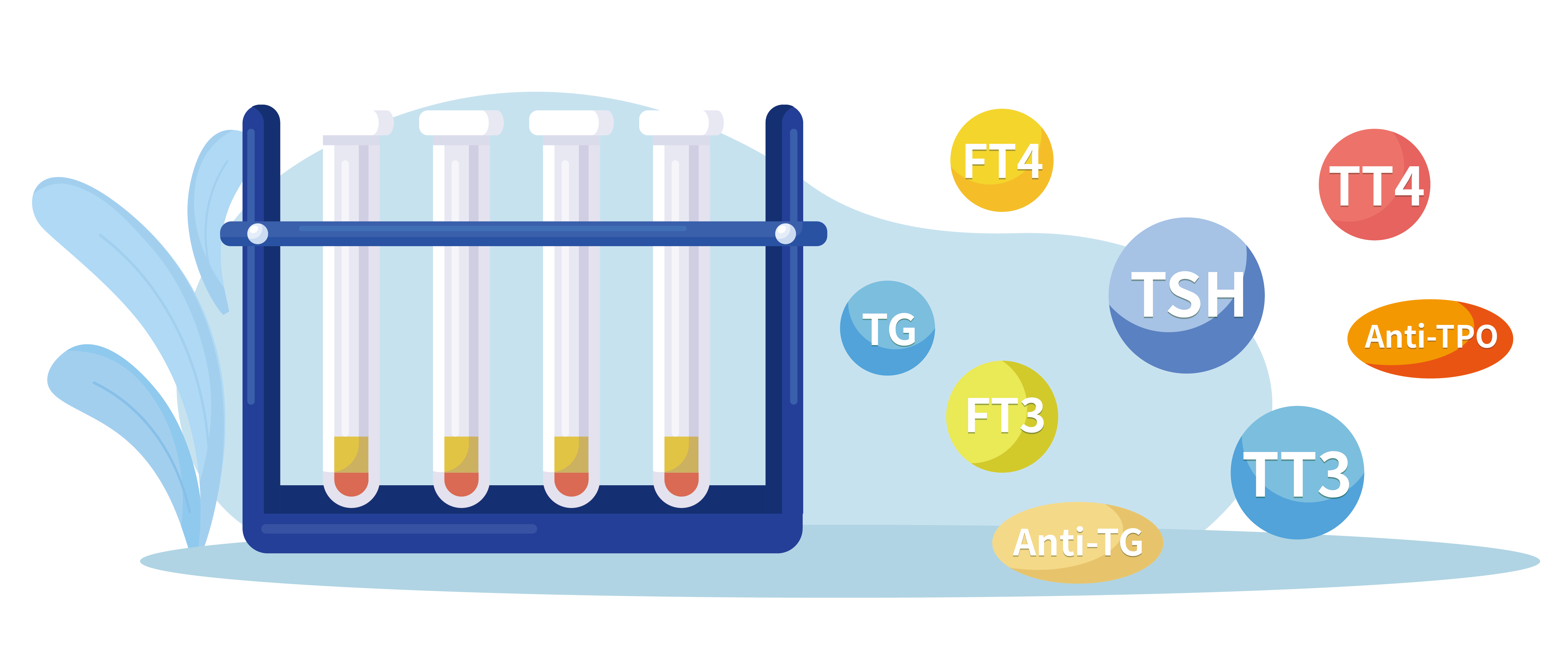 ¹¦Ð§Ö¸±ê£ºTSH¡¢TT3¡¢FT3¡¢TT4¡¢FT4