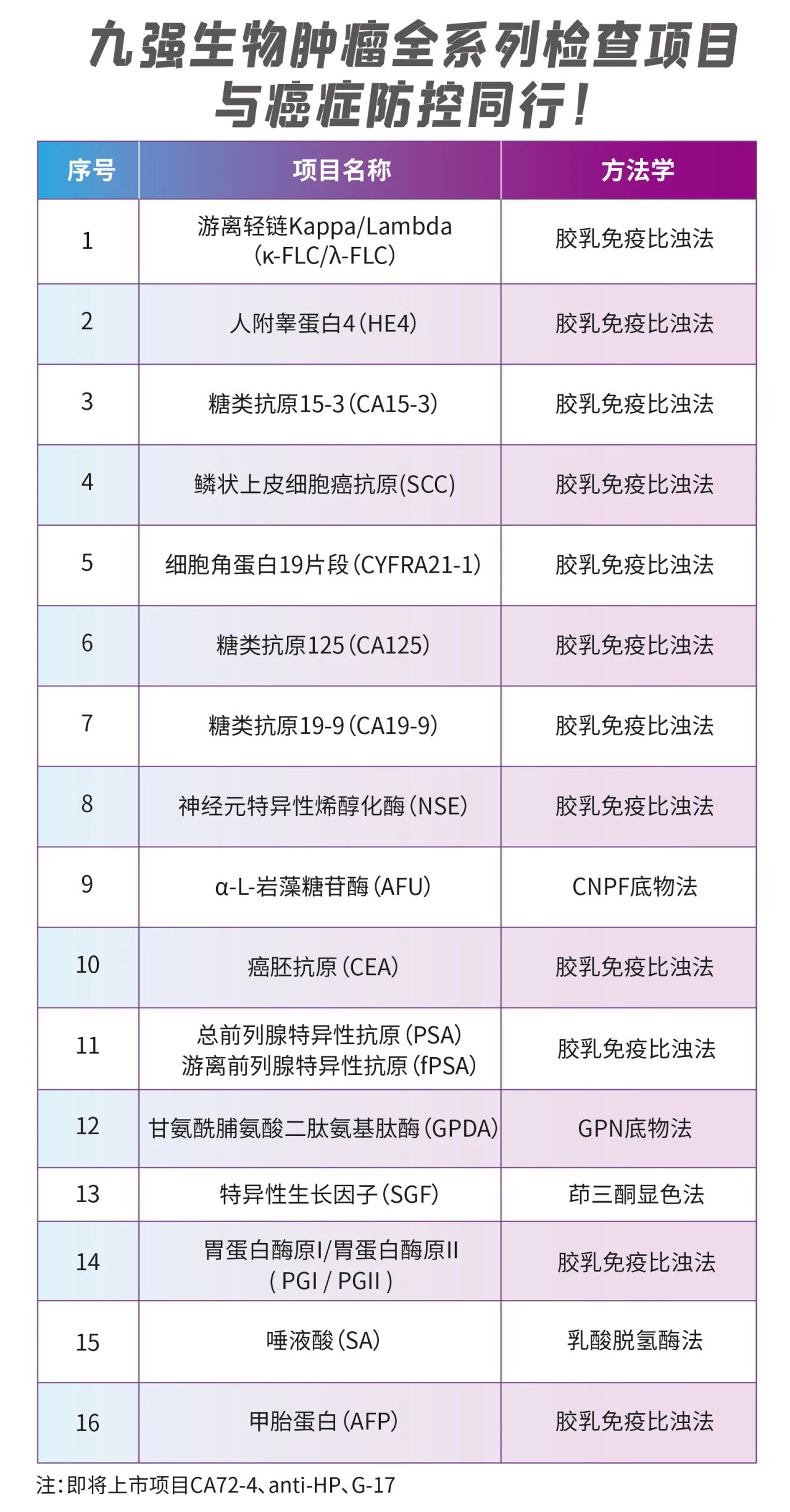 ①周全的肿瘤项目菜单,涵盖常见肿瘤的标记物