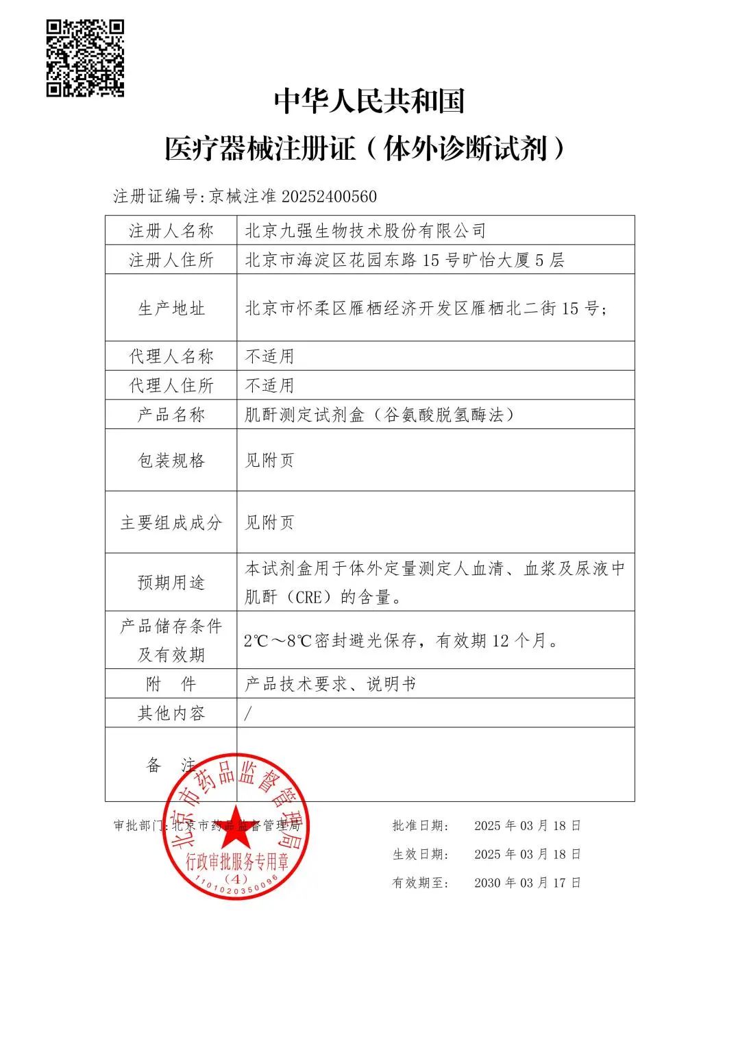 再添利器!龙8头号玩家唯一官方网站游戏生物肌酐测定试剂盒获证!