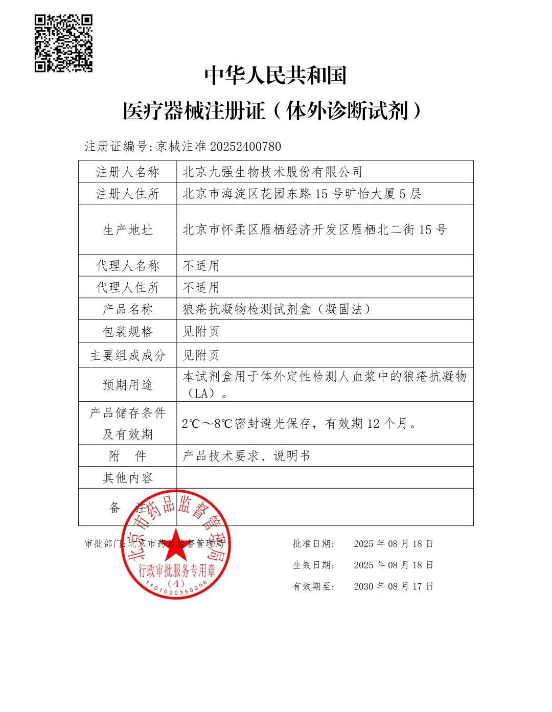 克日,龙8头号玩家唯一官方网站游戏生物狼疮抗凝物检测试剂盒(凝固法)顺遂取得国家药品监视管理局揭晓的《医疗器械注册证》(注册证号:京械注准 20252400780)。